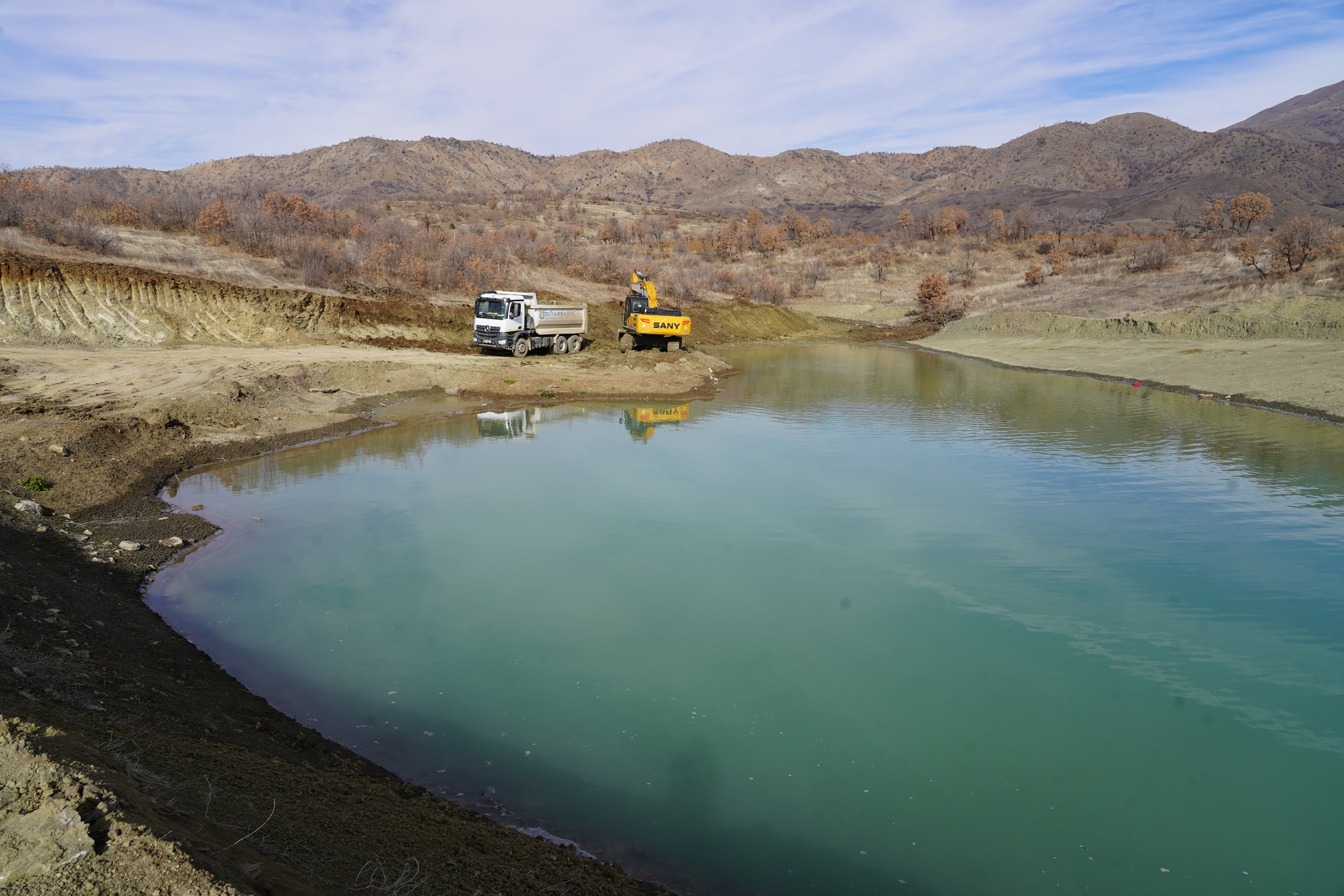 Diyarbakır Büyükşehir Belediyesi Kırsal Kalkınma Daire Başkanlığı ile Kulp Belediyesi işbirliğiyle Ağaçlı mahallesine bağlı Aliyan Deresinde bulunan sulama Gölet’inde başlatılan onarım, güçlendirme ve kapasite artırım çalışmaları devam ediyor.